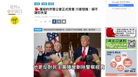而川普自己,就是「法律與秩序」的最主要擁護者,他不斷在推特上、在集會場合公開強調,要維護法律與秩序,他更反對民主黨陣營刪除警察經費,堅持力挺執法人員,也讓川普罕見地獲得紐約警察工會公開背書支持。