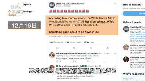 到了隔天,也就是16日深夜,網絡節目主持人范德斯提爾(Ann Vandersteel)在推特上披露,白宮已經下令,要求多數的白宮幕僚離開華府,盡快清場。這個不尋常的舉措,很可能意味著有大事要發生。