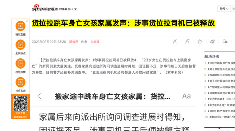 昨天(21日)晚上,針對網友爆料的「23歲女生在貨拉拉車上跳窗身亡」這件事,貨拉拉在官方微博上發佈了一份聲明,表示對這起事件悲痛和遺憾。並且表示,貨拉拉在2月11日與家屬展開第一次商談,但沒有達成一致。