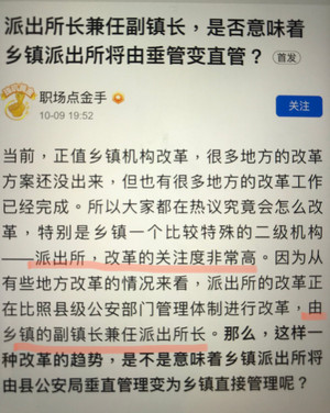 出走體制的前中共中央黨校教授蔡霞10月12日發出一則推文,附帶三張圖片,內容是在討論大陸的鄉鎮機構改革,提到用「鄉鎮副鎮長兼任派出所所長」,增加派出所長在鄉鎮的話語權。但是蔡霞點評說,這實質就應該掉過來看,就是派出所長兼任副鄉鎮長,標誌中共國在強化警察治國。她還提到說,2020年7月,中共將400萬輔警轉為正式編制,警察總數一下子達到600萬!她說這老百姓納的稅,實際都是給強權監視自己了。
